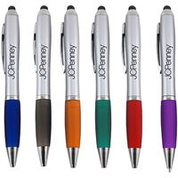 Unique, oval die cut shaped grip featuring solid colored barrels and black grip and clip. Chrome trim. - Mechanism: Plunger-Action|Ink Color/Point Style: Black ink with medium point